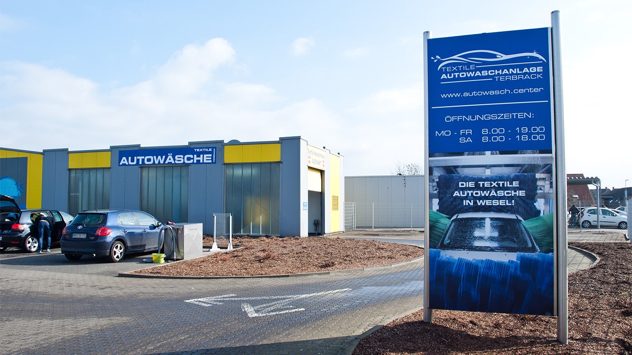 Seit 1998 sorgt die Textile Autowaschanlage Terbrack in Wesel schon für zufriedene Kunden und vor allem für saubere Autos. Ob der Kunde seinen Wagen von unseren geschulten und stets gut gelaunten Mitarbeitern waschen lässt oder dies in einer der vielen Waschboxen selbst in die Hand nimmt – dem Schmutz bleibt keine Chance! Ebenso bleiben bei der Innenreinigung keine Wünsche offen, da dem Kunden eine Vielzahl von Hochleistungsstaubsaugern zur Verfügung stehen. Alle Teile der Anlage werden stets auf dem höchsten technischen Stand gehalten, wodurch das Auto geschont wird und der Kunde zugleich ein angenehmes Wascherlebnis erhält.