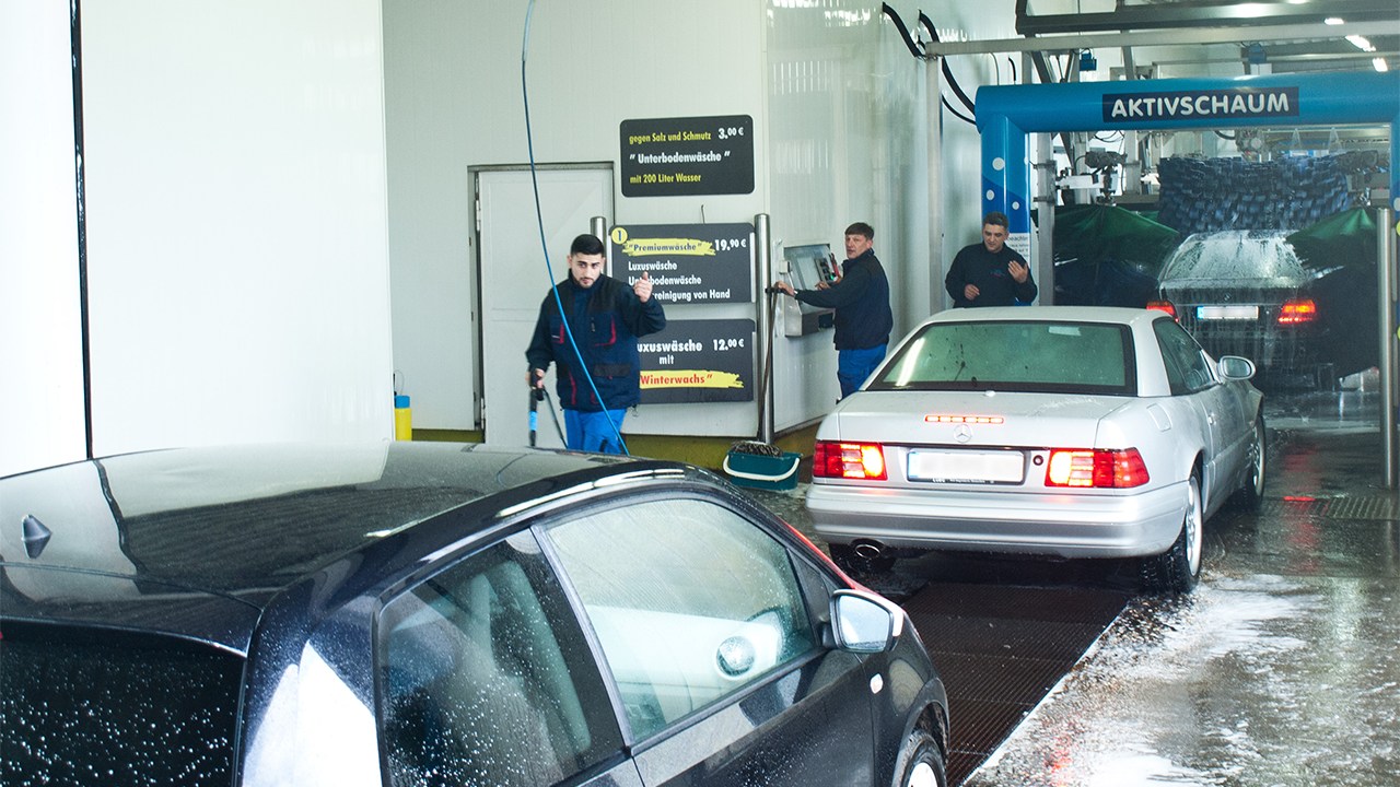 Als erstes wird der Kunde in der Wahl seiner Wäsche durch das Waschstraßenpersonal beraten. Daraufhin erfolgt die Abrechnung der Waschkosten und die Vorbehandlung der verschmutzten Bereiche am PKW. Danach wird das Auto mit Hilfe eines Hochdruckreinigers per Hand vorgereinigt. Nach der Vorreinigung wird der Waschkunde auf die Transportkette gelotst. Als nächstes wird das Auto mit einem Aktivschaumfilm überzogen. Es folgt die Reinigung des PKWs mit Hilfe der textilen Waschwalzen, bevor das Auto mit Klarwasser vollständig abgespült wird. Im Anschluss wird das Auto mit einem Wachs- bzw. Trockenhilfefilm bedeckt. Abschließend erfolgt der Trocknungsvorgang des Fahrzeugs mit Hilfe von zwei Trockengebläsen und Seitendüsen sowie eine weitere Trocknung mittels Textilwalzen.